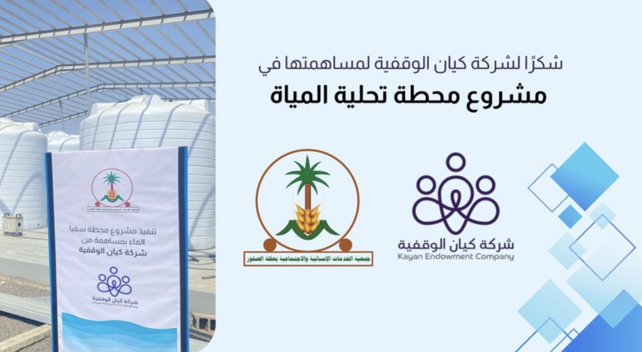شكر وتقدير لشركة كيان الوقفية على دعم مشروع محطة تحلية المياه
